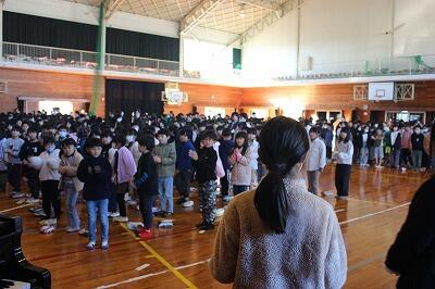 終業式の最後には、全校児童が校歌を斉唱しました。