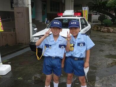 参加したのは、安藤心太郞さんと岩見俊佑さん。恥ずかしがりながらも、パトカーに乗って一生懸命に交通安全を呼びかけました。社会や地域に貢献するこうした取組も、子どものうちから経験させておきたいことの一つです。立派な制服を身にまとい、少し誇らしげな二人でした。ありがとうございました。