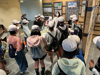 宮崎県庁に到着しました。本県の防災の拠点として、一昨年度に完成した防災庁舎を中心に見学しました。緊急時には、災害対策本部の設置される部屋にも入らせてもらいました。地下には免震装置があったり、上層階には非常用発電機等があったり、災害時でも対応できるような設備となっているようです。見学の終わりには、各クラスの代表児童がお礼の言葉を述べました。堂々した態度でした。