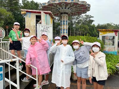 小雨状態が続いているようです。遊園地では、何とか4種類の乗り物が動いていました。フラミンゴショーや猛獣の餌やりなど、動物も見て回りましたが、やっぱり遊園地が大人気でした。子どもたちは、歓声をあげて大喜びです。