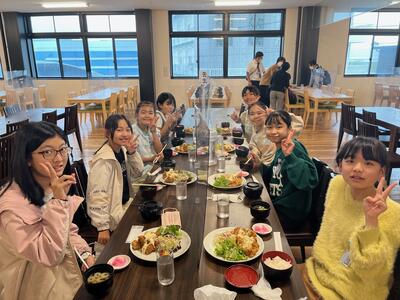 登山でかなり体力をつかったせいか、いつもより食欲旺盛で、何度もおかわりするな子どももいたようです。たくさん食べて、栄養を蓄えよう。