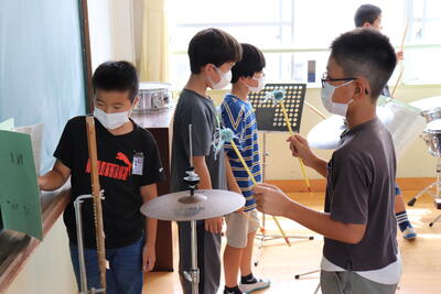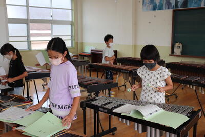 最近、音楽室から楽器の音がよく聴こえてきます。教室を覗くと、4年生が合奏の練習をしていました。11月18日(金)に実施予定の「延岡市小中学校音楽祭」に向けての練習です。本校からは、4年生が代表として参加しています。合奏「もう少しだけ」、合唱「ありがとう」の2曲を披露する予定です。運動会と並行しての練習になりますが、息の合った演奏を期待しています。