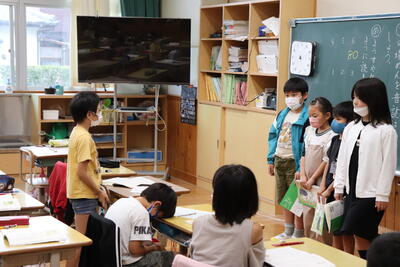 9月26日(月)、2年生が国語「お手紙」の学習で音読発表会をしていました。本単元では「場面の様子に着目して登場人物の行動を具体的に想像すること」「語のまとまりや言葉の響きなどに気をつけて音読すること」を主な目標としています。グループごとに、役割分担して上手に音読していました。発表後は、音読を聞いていた子どもたちが、よかった点を見つけて発表する姿も見られました。ご家庭でも学習の成果を確認し、ぜひ褒めてあげてください。