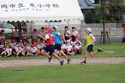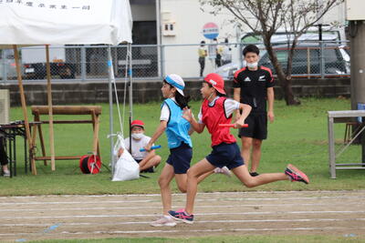 全体練習の後半に、対団リレーの練習を行いました。1年生の選手は、小学校で初めての経験となりますが、しっかりとバトンをつなぐことができました。運動会の最後を飾る注目の競技。選手の皆さんの力強い走りを期待しています。