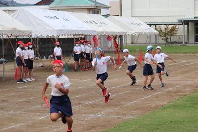 運動会まで残り10日を切りました。体育の時間はもちろんですが、昼休みなどを使って自主的な練習に取り組み姿も見られます。10月5日(水)の昼休みにも、3年生が学年リレーの練習を行っていました。走力のみならず、スムーズなバトンパスが勝敗の鍵を握ります。勝利を目指し、チーム力を高めてほしいものです。