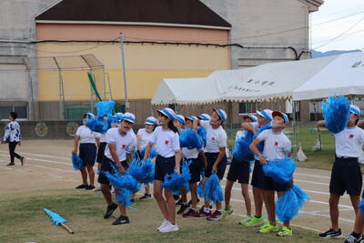 4年生の表現は、「東っ子ミックスチャレンジ」、人気アニメ主題歌の軽快なリズムに乗せ、楽しく踊ってくれました。手元のボンボン同様、キラキラ光る笑顔が印象的でした。