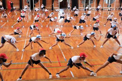 今後、永野教諭が5年3組の体育授業に入り、担任の鈴木教諭とともにバスケットボールの授業づくりを行う計画となっています。10月24日(月)は、初回の顔合わせも兼ね、体づくり運動を行いました。ポジティブな声かけで、子どもたちを上手に乗せながらの指導は大変参考になりました。今後の授業も楽しみです。