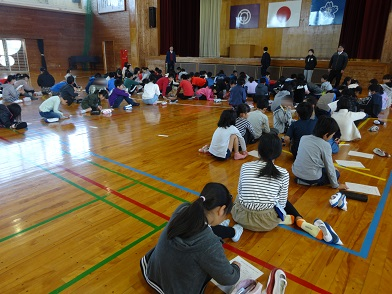 中でも8時48分の2回目の地震は、宮崎市で震度5弱、マグニチュード6.3を記録する大きなものでした。延岡市は震度4。震源地はいずれも日向灘です。ちょうど授業中だったこともあり、テレビニュースで情報を集めつつ、藤川教頭先生から机の下などに身を隠し様子をみるように校内放送をしていただきました。その後、津波の心配がないことを確認し、通常授業を行うよう指示しました。先月、地震からの津波を想定した避難訓練をしていた成果もあり、子どもたちも先生方も落ち着いた行動ができたようです。