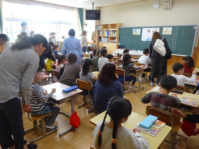 15日(月)から今日17日(水)までの3日間、今年度初めての参観日を行いました。15日は5・6年生、16日は3・4年生、そして今日17日が1・2年生でした。ご多用な中、たくさんの保護者の皆様においでいただき、子どもたちもうれしそうでした。少し緊張した表情ながらも、一生懸命授業に参加している姿に頼もしさも感じました。特に1年生は、初めての参観日とは思えないほどの落ち着きでした。3クラスとも国語の学習で「正しい姿勢で文字を書く」ことを学んでいました。