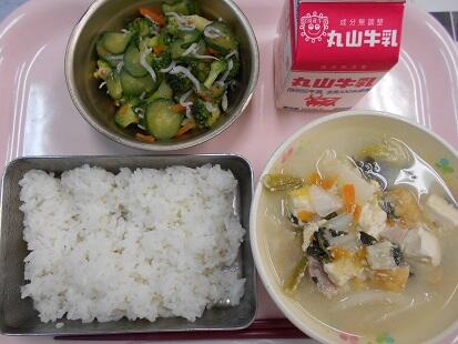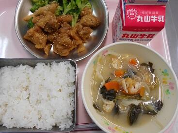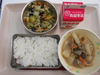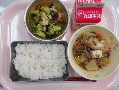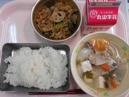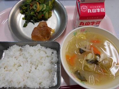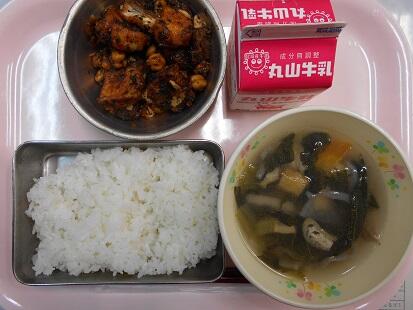 給食を食べながら「今日の献立、体にもいい素晴らしい献立!」と、自画自賛してしまうほど。いつものことながら、〝素晴らしい献立〟と思えるのは、調理員さんが美味しく安心な給食を作ってくださったお陰様。生産者の方々、食材の仕入れをしてくださる業者の方々など多くの方のお陰様。感謝の気持ちを込めてごちそうさまでした。
