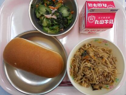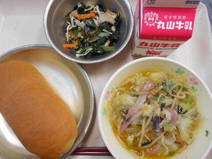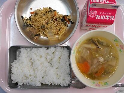 いつもお伝えしていますが、給食は〝食育〟を考えて献立を作成するので、苦手な食材も出ることがあります。が、子ども達の思い出に残る楽しい給食でもあります。「汁なし麺(ラーメンやちゃんぽん)」もきっと子ども達の思い出の給食になっていると思います。