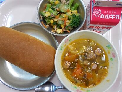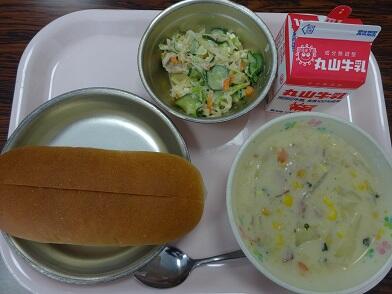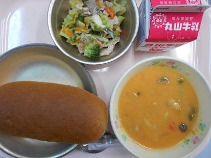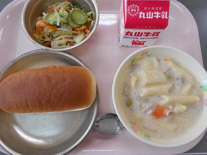 今日の給食。夕方4時ごろだったと思います。給食室前で下校途中の6年児童に遭遇しました。