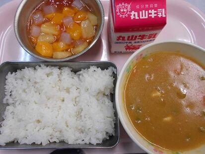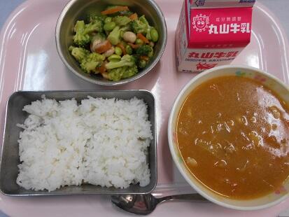 給食室に行くと調理員さんたちがカレーを一生懸命作ってくださってました。「味見お願いします。」と調理員さんが持って来てくれたカレー。いつもに比べると若干ではありますが、ちょっと白い。濃口醬油足そうかな・・・と味見をすると、とっても美味しいいつものカレー。辛さも、いつもと同じ優しい給食のカレーの辛さ。ん・・・不思議。大豆を入れていたからかな(@_@) 職員からも「ん?いつもよりちょっと白い」との声。んー。ちょっと謎です。