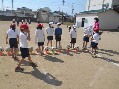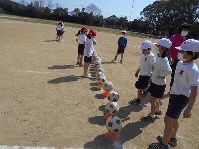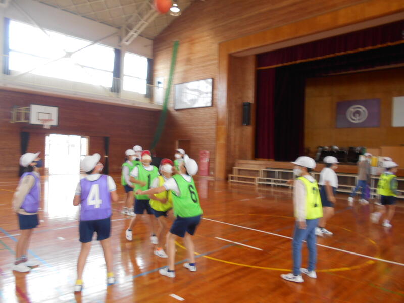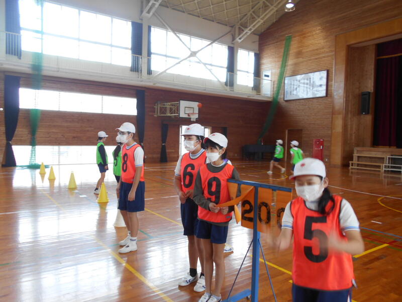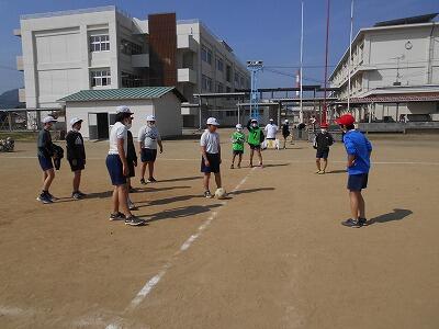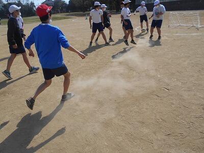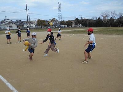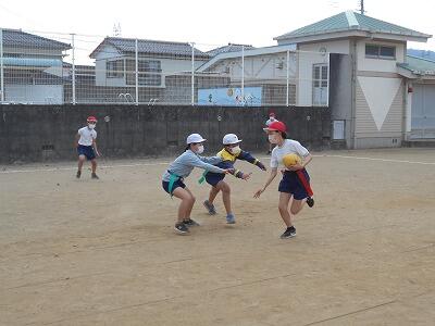 タグラグビー1時間目。ルールを少しずつ理解しながら進めています。