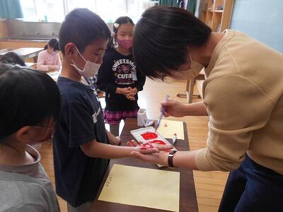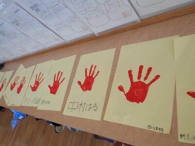 成長の証の手形を残していました!なんだかみんなとってもうれしそうでした。