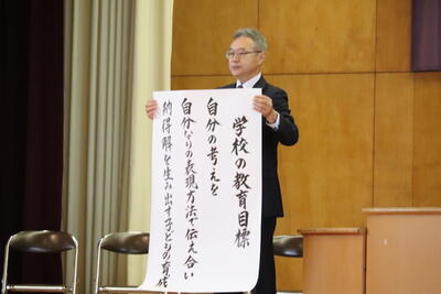 新任式に続き、担任発表がありました。ここでも子どもたちのわくわくが伝わってきます。その後の始業式では、学校長が、昨年度から新たになった学校の教育目標「自分の考えを、自分なりの表現方法で伝え合い、納得解を生み出す子どもの育成」を確認し、互いに意見を交流させながら納得解を導き出すことの重要性を子どもたちに伝えました。