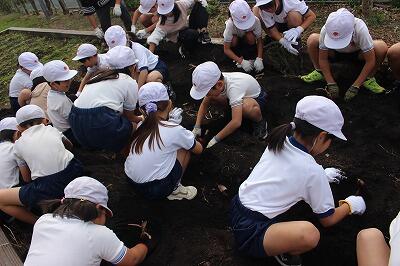 中には一度に3、4本の芋を掘り当てる子どももいました。