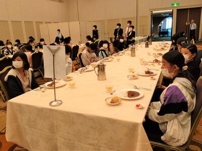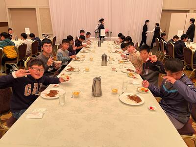 1日目は、宮崎観光ホテルでの昼食です。メニューはカツカレーランチでした。あまりのおいしさに、たくさんの子どもたちがおかわりをしたようです。