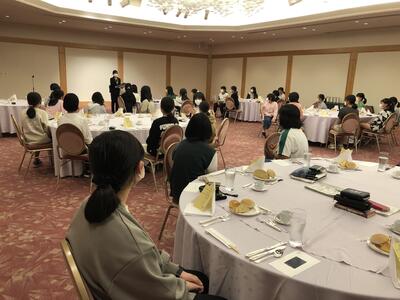 夕食の会場は、シーガイアコンベンションセンターです。メニュー表を見ただけでも、食欲をそそる内容です。広々した会場、円卓の隣との距離も十分で、感染症対策にも配慮いただいています。