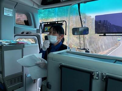 今頃ですが、バス座席の前後にも透明アクリル板が設置されていました。関係各所の皆さまのご配慮に感謝いたします。