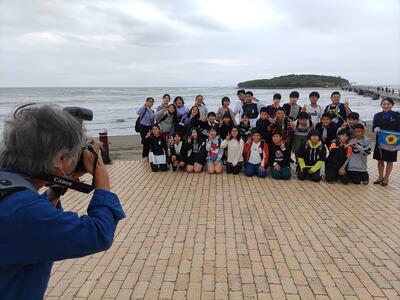 集合写真を撮影後、いざ青島へ。