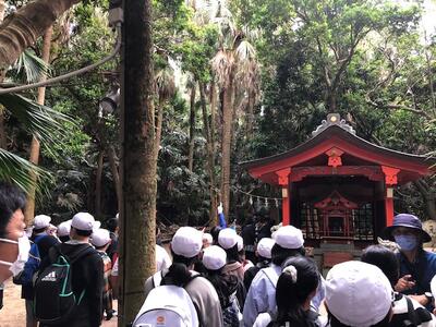 青島に渡りました。青島神社の由来をガイドさんに教えていただきお参りしました。