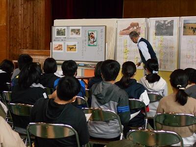体育館にて、校長先生からの全国道徳「風に立つライオン」が行われました。