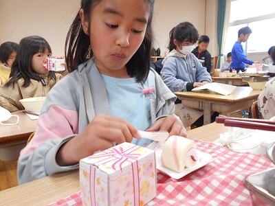 今日は最後の給食でした!お祝いケーキがでましたーーー