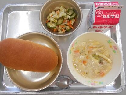 来週火曜日の12日が「ミネストローネ・コロコロチーズサラダ・コッペパン・牛乳」
