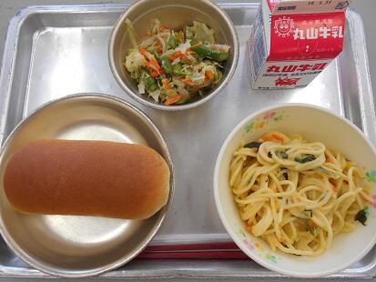 今日の給食は、今年度初めての「塩焼きそば」でした。