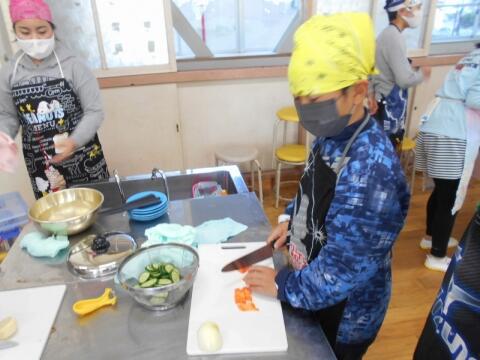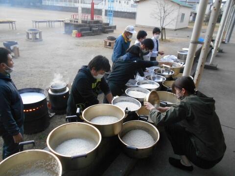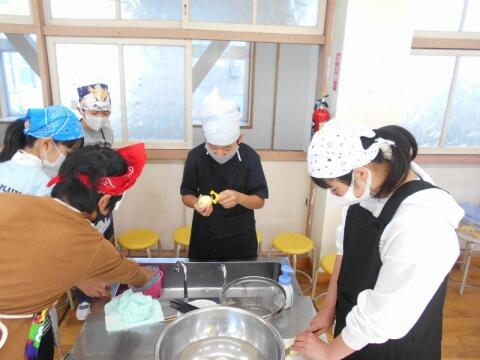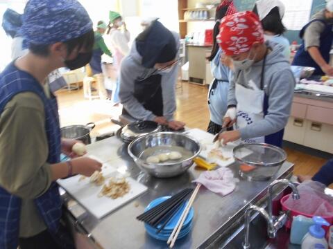 昨日の餅つきに続いて家庭科で調理実習をしていました。