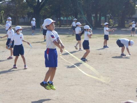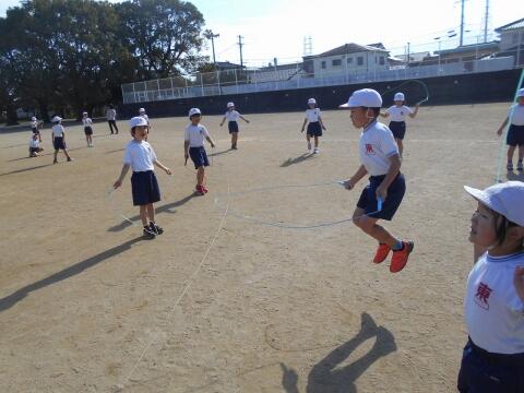 元気よく2年生が縄跳び運動に取り組んでいました。