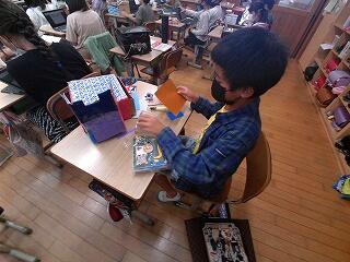 昨日、図工で「おもしろダンボールボックス」の学習を行いました。自分の大切なものを入れる箱を工夫しながら作りました。それぞれ、オリジナルのアイディアボックスを上手に作成することができました。