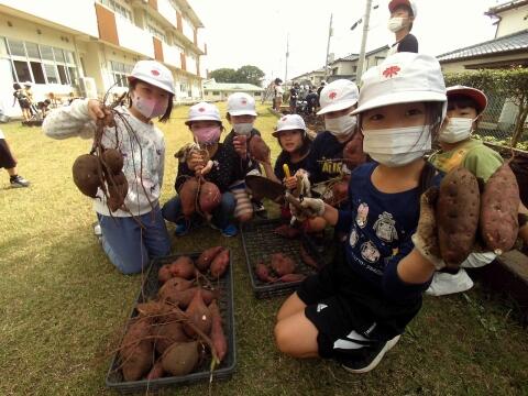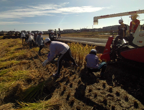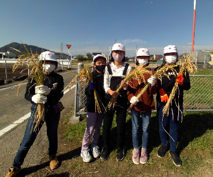 10月27日(水)、5年生が濱田憲司さん所有の実習田にて稲刈りをしました。一人一人が手に鎌を持ち、ザクッザクッと音を立てながら楽しそうに刈っていました。
