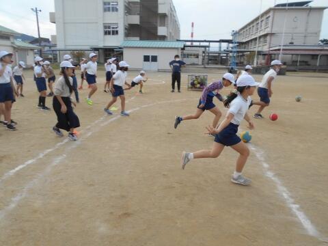 6年生はTボール(ベースボール型ゲーム)をチーム対抗戦で盛り上がっていました。