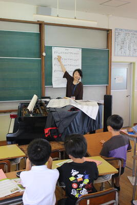 先週金曜日に「ふるさと教育推進事業」で藤島節子様が来校されました。