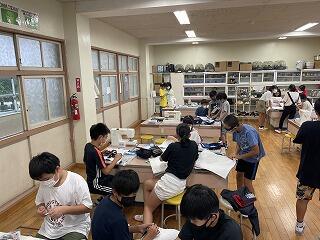 6年生は家庭科はミシンと裁縫道具を使ってのグループ活動です。