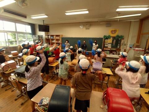 本日(9/2)全校児童で避難訓練を行いました。地震(津波の予報なし)の後、給食室から火災が発生したので運動場に避難するという設定でした。1回目の放送「地震です!」のときは机の下で頭を守り、2回目の放送「火災が発生しました」の後、運動場へ避難しました。子どもたちは「おさない・すばやく・しゃべらない・もどらない」を守り、真剣な面持ちで訓練ができました。2回目の放送から全員の安全が確認されるまでの時間は3分58秒でした。
