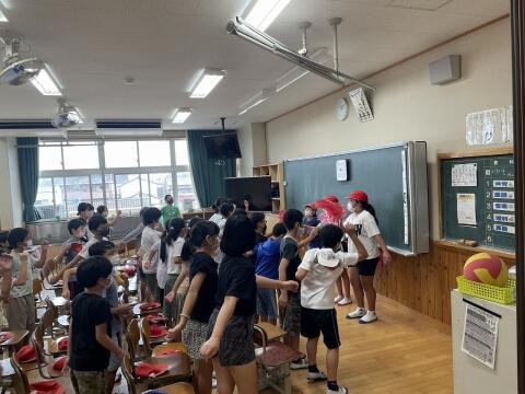 リーダーが各学級に行き、応援の仕方を教えていました。