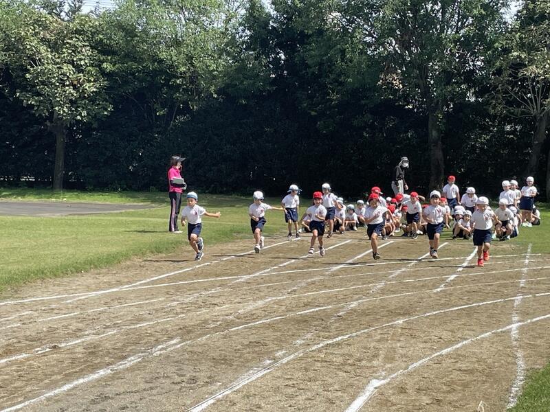 1年生はリレーと徒走の練習です。ラインを越さずにまっすぐ走ることができるようになってきました。