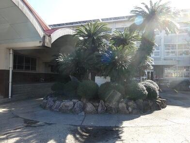 【学校の木:ソテツ 昭和16年に植栽されています。80年近く子どもたちを見守っています。】