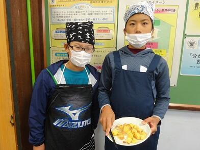 5年生に引き続き、今日は6年生が家庭科の調理実習を行ったようです。男子2人が「ジャーマンポテトをつくりました。食べてください。」と太い声で届けてくれました。