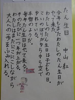 さて、前回図工や書写などの作品展示について触れましたが、5年生では国語の時間を使って詩を書いたようです。教室前の掲示板に貼ってあります。一つ一つを興味深く読ませてもらいました。どれもとてもよくできていて、思わず「そうだよね」と声に出したり、「いいねえ」と感心したり。その中から一つご紹介します。