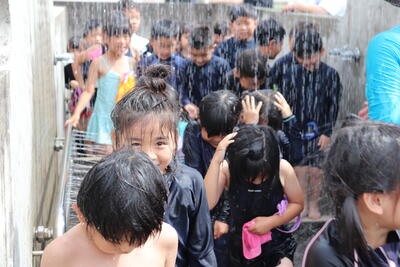 6月26日(月)、6・1・2年生のプール開きが行われました。子どもたちは、この日を楽しみにしていたようで、気持ちよさそうに水慣れしていました。(2年生は、プールに入る前と後の写真です。ごめんなさい)
