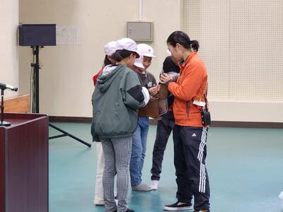 おわりのつどい前に、午前中に実施した追跡ハイキングの表彰が行われました。各学級1位の班には、缶バッジのプレゼントがありました。優勝した班の皆さん、おめでとうございます。おわりのつどいでは、研修生代表児童が2日間の学びを振り返り、体験発表を行いました。2日間の活動を通して、貴重な体験をすることができました。お世話になったむかばき青少年自然の家の職員の皆さん、大変お世話になりました。