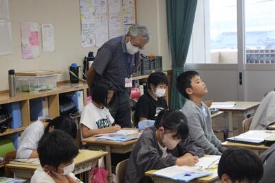 國武先生が授業を進め、はげまし隊の皆様が子ども達のサポート。