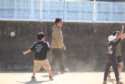 いつもの主役は子どもたちですが、今回は先生が主役の内容です とある陽気な昼休み、運動場を見てみると、子どもたちと一緒に遊ぶ先生方の姿がありました。東小の先生たちって、子どもとよく遊んでいます。他にもいたのですが、シャッターチャンスを逃してしまいました