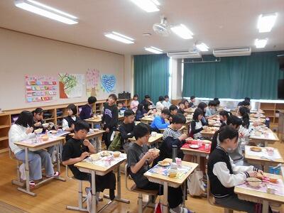 6年生は、友だちと楽しそうに給食を食べていました。心に残る給食になったことと思います。