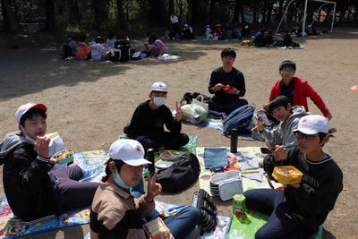 たくさん遊びおなかがすいた子どもたち、楽しみなお弁当タイムです。みんな、おいしそうに食べています。