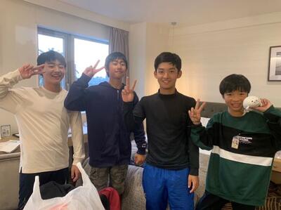 4組のバスが道を間違えるというハプニングがあったようですが、予定時刻より早くホテルに到着しました。本日の宿泊は、宮崎観光ホテルです。夕暮れの大淀川の景色がきれいですね 部屋の様子を覗いてみると、ベッドでくつろいだり、しおりを記入したり、ガイドさんなどへの寄せ書きを書いたりと様々です。